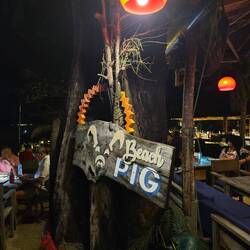 Heute gehen wir in den Golden Fish und genießen das Meer, das Lebensgefühl in Thailand und das leckere Essen. 😋🏖️🍹 Zum Abschluss gehen wir noch ins Beach Pig. 🐷🥳😎