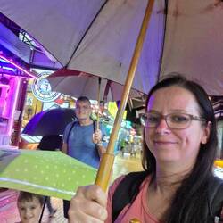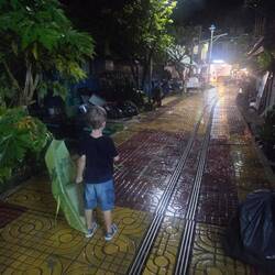 Seit ca. 16 Uhr regnet es. 🌧️☔️💧 Die Wege sind unterspült, aber wen kümmert es, wir laufen eh alle mit Flipflops, also ab zur nächsten Bar. 🚶♀️🍹😎 Es ist immer das, was man daraus macht. 😊🥳