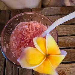Heute Mittag sind wir am Strand spazieren gegangen. 🏖️🚶♀️ Am Ende haben wir uns einen kleinen Snack und einen Fruchtshake am Strand gegönnt. 🫔🍹😋
