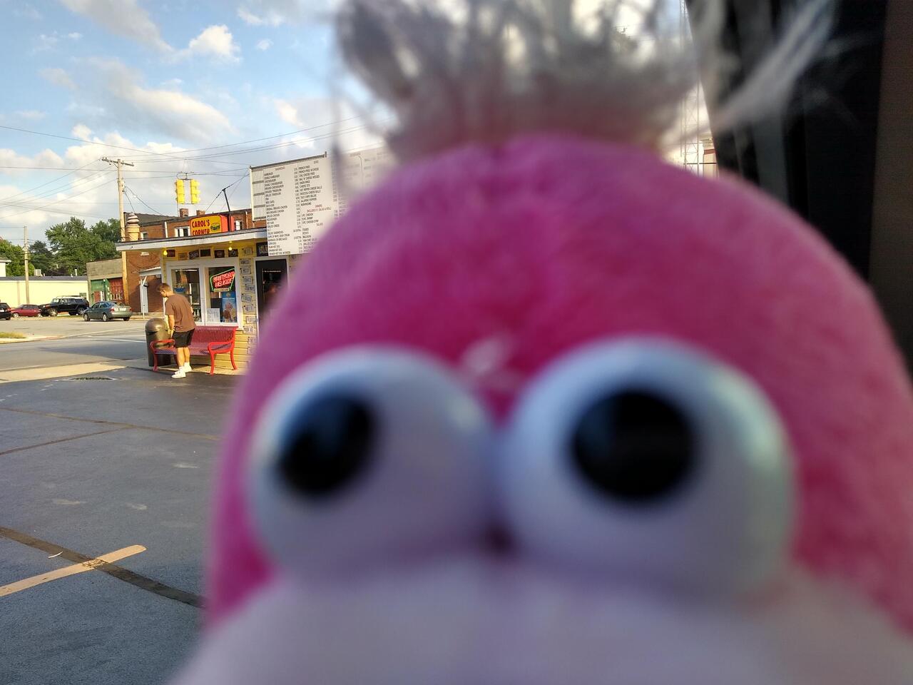 Eating in pickles with root beer! Just getting out for a change of scenery and food we didn't have to cook or clean up after 👍