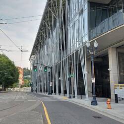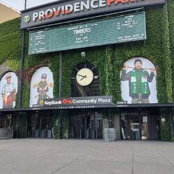 Portland, Oregon. Ein auf schick gemachtes Hotel, ohne Klobürste. Ein netter Park oberhalb der Stadt. Und ein Stadion, dass von außen nicht wie eins wirkt und mitten in der Stadt liegt.