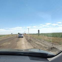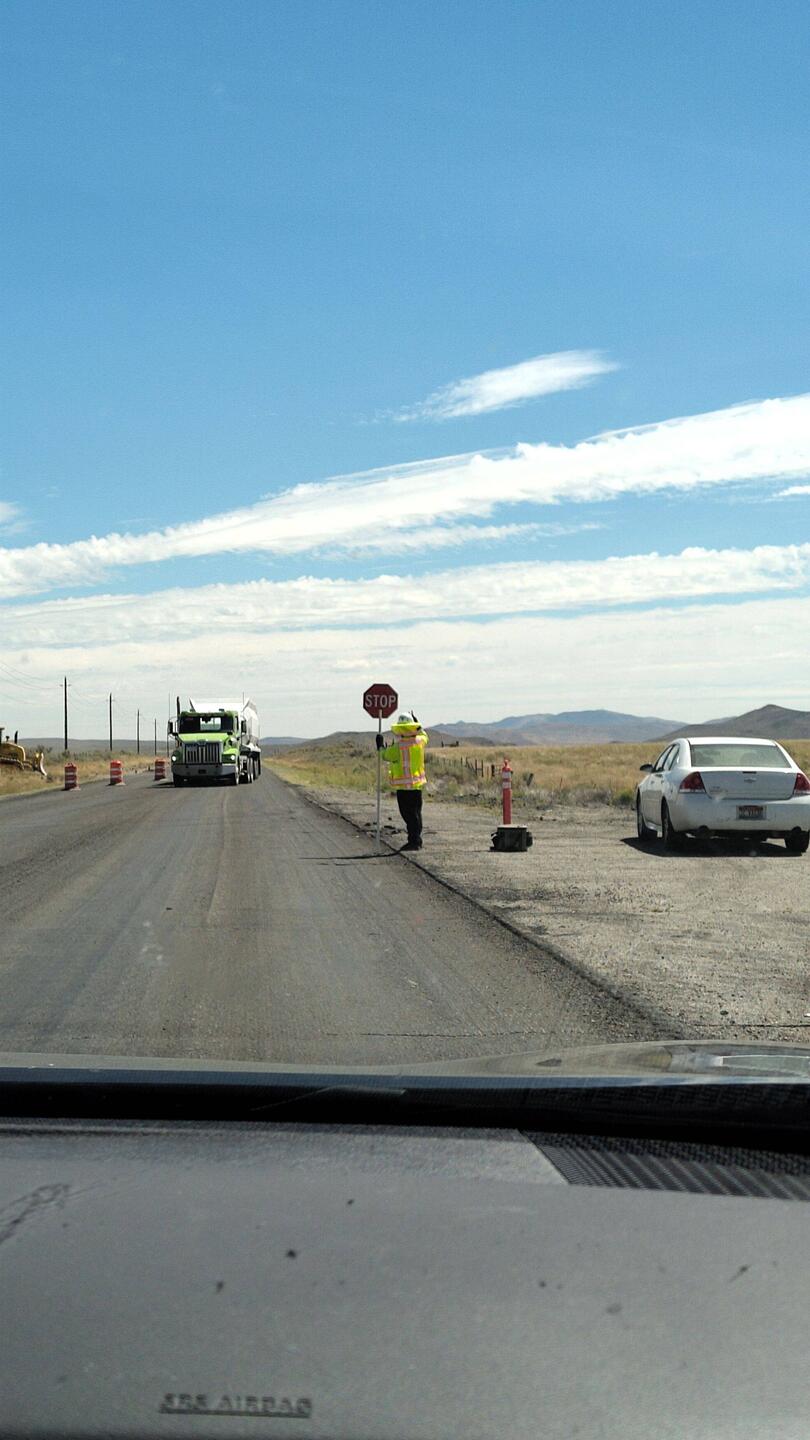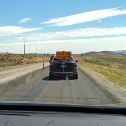 Die Landschaft ist farblich ähnlich zu der von gestern, aber doch auch anders. Trotzdem schlafe ich einen großen Teil des Weges. Da die Interstate auf einem Stück gesperrt ist, fahren wir wiederLæs mere