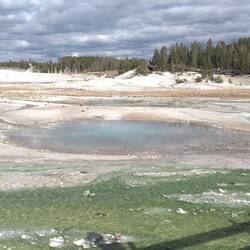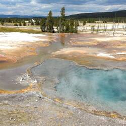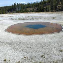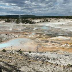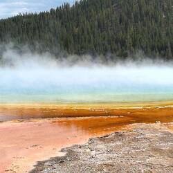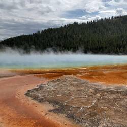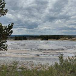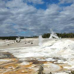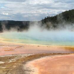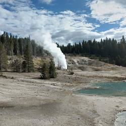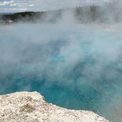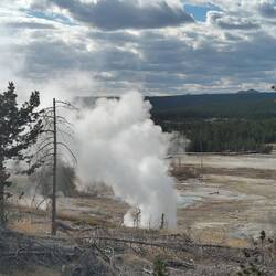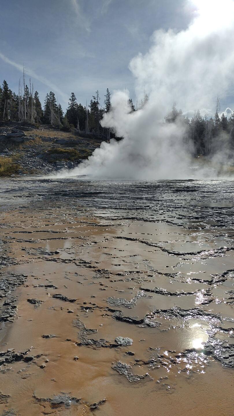 Wir starten den Tag früh und fahren als erstes zum Old Faithful Geysir, der 15 Minuten nachdem wir ankommen auch ausbricht.