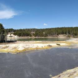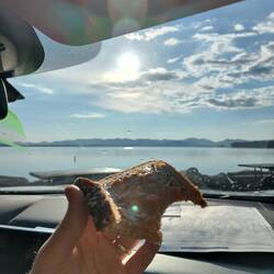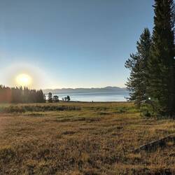 Wir frühstücken, idyllisch, mit gutem Ausblick auf den Yellowstone Lake. Auf dem weg dorthin hatten wir schon einen Schockmoment, als uns hinter einer Kuppel plötzlich ein Auto während einesLæs mere