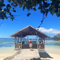 Das Brot zum Füttern regte unseren Appetit an, weshalb wir daraufhin auf Long Island für 2 Stunden angelegt haben. Wir spazierten den Strand entlang, pinkelten ins Wasser (hihi), während unsere Crew ein BBQ Mittagessen für uns vorbereitete. Wir haben das erste mal Haifisch probiert und fanden es beide nicht so lecker. Das Essen sonst war gut.