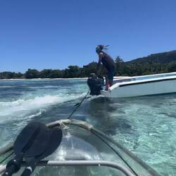 Für unsere Verhältnisse machten wir uns früh (um 9 Uhr) auf zum Hafen bei Eden Island. Um 10 Uhr startete unsere Tour in einem Glass Bottom Boat. Wobei nicht der ganze Boden Glas war, sondern nur ein Spalt in der Mitte (2. Bild). War trotzdem cool, wir konnten durch den Boden tatsächlich einige Fische und Korallen sehen. Unser Tour Guide erzählte uns, dass Eden Island wohl auf einem Korallenriff gebaut wurde und er sich darüber ärgert, dass die Menschen die ganze Natur kaputt machen und nur auf Geld aus sind. Die Bauleute meinten wohl das Riff sei tot gewesen, laut unserem Guide nicht… das nahegelegene Riff bei dem wir schnorchelten war schon zu großen Teilen abgestorben, einige lebendige Korallen gab es trotzdem zu bestaunen. Es kommt wohl langsam zurück.