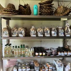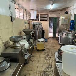 Nach ungefähr drei Stunden machten wir uns auf den Rückweg. Wir überlegten, was man bei bewölktem Himmel noch machen konnte. Für den Nachmittag war Regen angesagt, also war Strand keine Option. Und was bleibt dann noch auf einer Insel? Richtig, essen gehen und lokale Läden anschauen. Wir ließen uns zwei Pizzen schmecken und fuhren dann zu eine Kokosölfabrik, die ich zufällig auf Google Maps entdeckt habe. Fabrik klingt hier allerdings größer als es war. Es handelte sich um ein Zimmer mit einigen Maschinen und einem kleinen Laden. Der Eigentümer erzählte uns stolz seine Geschichte und zeigte uns seine Maschinen. Bis ca. 1970 gab es wohl einige Kokosölfabriken auf den Seychellen, sie konnten dem Preisdruck der größeren Länder und Exporteuere allerdings nicht standhalten. Trotzdem gab es doch so viele Kokosnüsse auf den Inseln, eine Palme erzeugt wohl um die 100 Kokosnüsse im Jahr und es wachsen ständig neue Palmen, wenn man dies nicht aktiv stoppt. Heißt konkret, die Insel bringt viel mehr Kokosnüsse hervor, als die Leute hier essen können! Deshalb beschloss der Eigentümer der Fabrik wieder ein kleines Geschäft mit Öl aufzumachen und auf lokale Produktion und vor allem Geschäft mit Touris zu setzen, die speziell etwas Lokales wollen. Die nötigen Fähigkeiten hat er noch von seiner Oma erlernt. Und das Konzept scheint seither aufzugehen. Er experimentiert viel herum. Er hat Seifen hergestellt, Kokosraspeln, natürlich Öl, Kokos-Marmelade, Body Scrub und noch einiges mehr. Es blieb nicht nur bei Kokosnüssen, inzwischen stellt er auch Zimt her, Muskat und Kurkuma. Alles wächst wild oder in seinem Garten. Mit Bienen versucht er es auch, er meint allerdings, er hat zu wenig Zeit für sie und so produzieren sie keinen Honig. Es war total spannend ihm zuzuhören und wir kauften danach auch gut ein. Geschichten verkaufen sich einfach super. Und man hat gemerkt, wieviel Herz er in seine Produkte steckt.