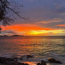 Ca. eine Stunde vor Sonnenuntergang fuhren wir zu Anse Severe und kauften uns einen Smoothie und einen teuren Cocktail um anschließend am Strand den Sonnenuntergang zu genießen. Die Sonne ging hinter Praslin unter und weil es so schöne war, können wir uns gut vorstellen, hier den Sonnenuntergang nochmal zu erleben.