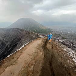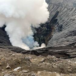 Wir nahmen uns also ein Herz und kletterten auf die Ausläufer des Kraters und schauten in den zischenden, dampfenden und brodelnden Abgrund von Bromo.