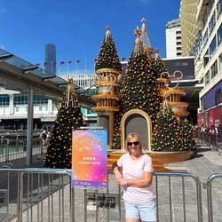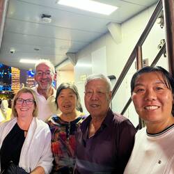 After a bit of relaxation time, we enjoyed drinks and nibbles at the hotel bar, and then made our way back along the harbourside for our pre-booked champagne junk boat ride on the Aqua Luna for the light show. Having seen a light show in Shanghai, we were somewhat disappointed with this one, although very much enjoyed the boat trip itself. Happy on champagne, Catherine chatted away with a Chinese lady and her daughter who spoke very good English - all very amusing!