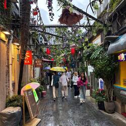 On to Shanghai Tianzifang, very much a Chinese Camden Market on steroids, with a maze of alleyways filled with food stalls, souvenir shops and all manner of services; it still retained an authentic charm, and the light rain, flowers and bustling atmosphere made for an enjoyable finish to the afternoon - we even bought a picture which we will enjoy lugging around for the rest of the trip!