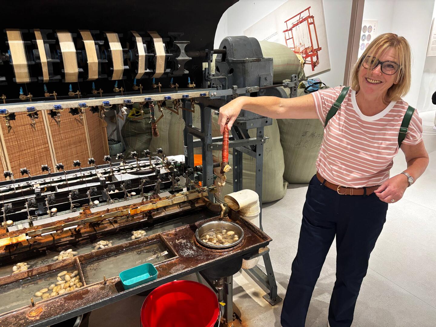 After a quick hotel breakfast we headed to the Silk Museum. Whilst this had the feel of the ‘5 minutes of museum, 55 minutes of shop’, it was however very interesting to learn about the life cycle of the silkworm, machinery used and the various types of silk used to make so many different types of garments, bedding, scarves etc. Catherine did buy a lovely pink scarf whilst Phil tapped his feet, so all was not lost.