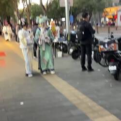 Next, we headed to Fuxing Park (had to double check that one), a very nice garden in the French Concession (concession = quarter). Lots of tiktokers and suchlike in the ‘rain corridor’, also more traditional dress - some ladies very kindly allowed us to take our photo with them.