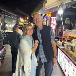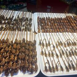 The streets were lined with many food stalls - Catherine was definitely not tempted to try an insect banquet although Phil said he’d give it a go - that is yet to be seen!