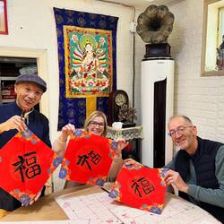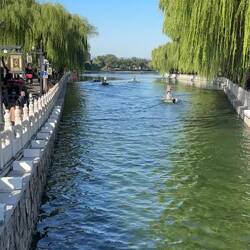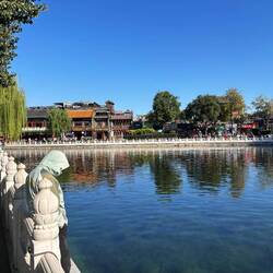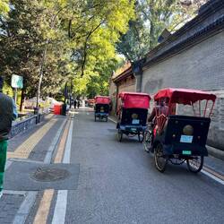 We got a bit of a lie in this morning before meeting Sean at 9am to visit the Hutong District, walking around a very pretty lake with bars and restaurants and saw many locals going about their day. We saw many old style quadrangle shaped buildings, where multi generational families still lived communally, sharing the facilities. Many still had their original features - square or round door features if the occupant worked in administration or the military respectively (book / drum shaped). Many doorways were guarded by pair of lions - always the lioness on the left, holding down a cub, and the male on the right, holding down a ball.