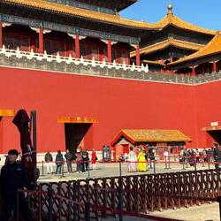 A subway tunnel linked the Square, symbol of the Republic, to the Forbidden City, home of the Emperors, and soon we were mingling with the dressed up Concubines (many), Emperors and Empresses queuing to enter. After a bag and passport check we were through and into one of the many outer courtyards, where we were able to move at our own pace and learn about the history of the various Dynasties and the construction of the city - the stones were laid 15 bricks deep, to discourage tunnelling.