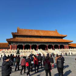 Leaving Hutong, we headed for Tiananmen Square and The Forbidden City. By arriving at around 12pm, we were able to avoid the usual hour long queues through security (one of the many ways in which our guides have improved our experience here) and were soon enjoying the sunshine, walking around the vast square which holds up to one million people!