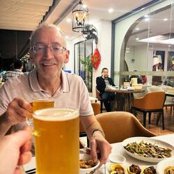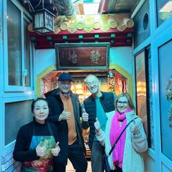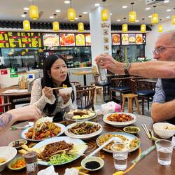 First stop was Bang Bang Noodles - named after the ‘bang’ they make when slapped on the worktop while stretching them - in chilli (Phil) or garlic (Catherine), 2nd stop meat skewers, 3rd stop dim sum / dumplings, cold noodles and ‘hidden treasure’ porridge (nobody’s favourite) -the 4th stop was at a private dining area after a dark walk between some tower blocks - we were served a feast of chicken with vegetables in a broth, meatballs with vegetables, black mushrooms and walnuts, carrot salad with crispy bread, black tea and rice wine. Last stop - a microbrewery and a menu of beer! - so many different varieties to choose from - our guide had actually pre sampled them so she could recommend the best ones! All in a days work 😂 Cheers! 🍻Read more