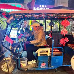 In the evening we met up with 10 British and American tourists for a ‘Lost Plate’ food tour - food by tuk tuk! - it was a fun and crazy experience! Cars, people, bikes, tuk tuks fighting their way through the busy narrow alleys! We had 5 stops tasting a variety of traditional dishes at small street food restaurants (we would never have found them on our own). The first few stops were in the Muslim Quarter, we stopped off to visit the Mosque and watch the Chinese Muslims arrive for worship.