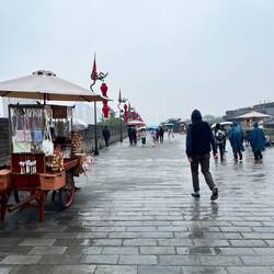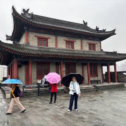 Another early start - today we set off for the ancient and modern city of Xi’an - 1000 kilometers and 6 hours by maglev train from Beijing - very comfortable seats in the first class carriage though, and and time to rest! The journey passed quickly and on arrival at a cold and overcast Xianbei Station we were met by Ella, our new tour guide.