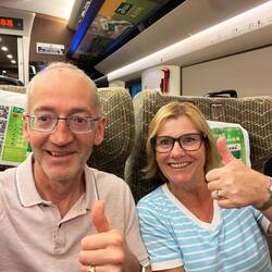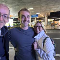 It's been an absolute joy, seeing your pictures and sharing your adventures. (I hope Phil had the rest of this week off before going back to work.) A well deserved holiday. You both look so happy and Lawrence does too. So glad he's getting on there. He deserves it. Lots of love to you all. XXX [Kim]
