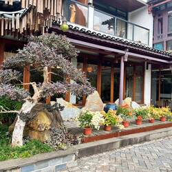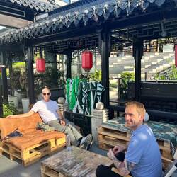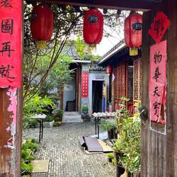 nice meal on the terrace of a restaurant, accompanied by craft beer. A walk afterwards on the side of the river Lijiang led us to the two pergolas