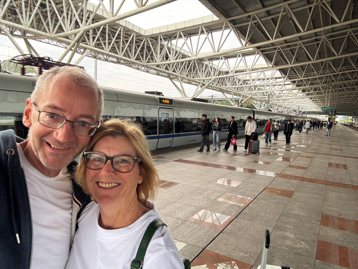 After a long flight (and a fruitless trip to the other side of the airport in search of the wrong gate) we safely arrived at Shanghai Pudong airport at 8am this morning (1am UK time) where we were met by our tour guide, Lucy. We took the Maglev train from the airport to the city which went at a speed of 300km/h, the fastest we’ve ever been on ground, unless you count Phil’s driving! 😂