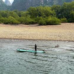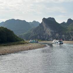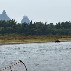 The Li Rivet was very shallow - the boat must have had a flat bottom, as we could usually see the stones and rocks on the river bed. We would definitely struggled to have sailed down it! But the shallow waters meant we could observe the local wildfowl and wildlife. Phil had a distant view of some water buffalo, and we also saw Ducks, Geese, Cormorants and other birds.