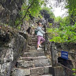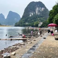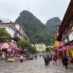 We carried on making our way into town, through Yangshou park where we had a stroll around before ascending (of course there had to be a climb) steep steps up a karst (karst being tree covered peaks), where we got some great views; even on a wet and grey day! The town is surrounded by karsts of which there were two others that had TV towers. These would have taken us higher, but given the weather, we decided to keep our feet firmly in the ground..