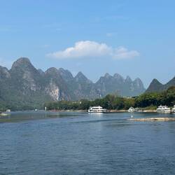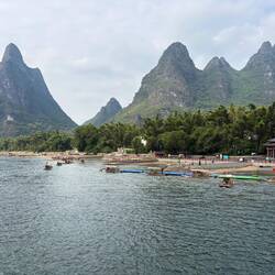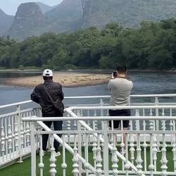 We boarded our boat and 20 minutes later we were off down the river with our guide, Boon. We were happy to see that there were maybe 50 people on the boat, so it didn’t feel crowded at all, and we had plenty of space for sightseeing and photography. And what sights! After all our city experiences in China, it was amazing to see the extraordinary peaks and scenery.