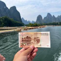 As we cruised down the river, admiring the ‘lost world’ landscape, we passed some famous landmarks - 9 horses mountain (you have to use your imagination to make out all 9 horses!) and a section of the river made famous by its use on the 20 yuan note, as the background for a bamboo fisherman.