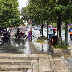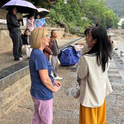 We woke up around 7am and the weather looked promising. However, this was not to be as by the time we had finished breakfast, it was overcast and raining! Brollies in hand, off we went. Despite the weather, we thoroughly enjoyed a riverside walk into the town - the rain stopped for a bit as we dropped down to the shore. This was a very scenic place where it felt like time had stood still, with the bamboo rafts and many young ladies dressed in traditional costume only added to such a scene - a beautiful place to just be. It would actually make a great setting for TV period drama!