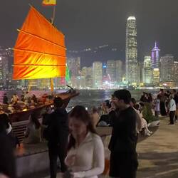After a quick freshen up, we ventured out - it was just the right time as the light was fading and we were treated to a wonderful display from the skyscrapers and boats as we walked along the Kowloon waterfront, looking across to Hong Kong Island. The waterfront was very busy, with much more of a western vibe than Shanghai. At times we had to pinch ourselves that we had made it here - the scale of the harbour was like nothing we had ever seen before.