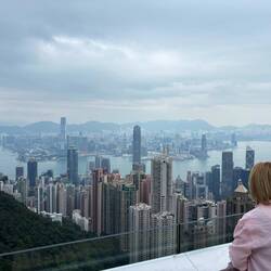 Once at Peak Tower, we took the escalators up another 4 levels to Hong Kong’s highest viewing platform known as Sky Terrace 428. Here we had incredible 360-degree views stretching across Victoria Harbour and the South China Sea. It was quite something to be looking down on the skyscrapers and across the whole of the harbour and city. We spent quite a while on the platform, taking it all in and of course for lots of photos. Although overcast, we still had very clear views.
