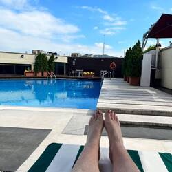 Suitcase procured, Phil carried, not wheeled, it back to the hotel (much to Catherine’s amusement), and after a short break we checked out the rooftop gym and pool for our last few hours, catching the last of the sunshine.