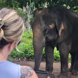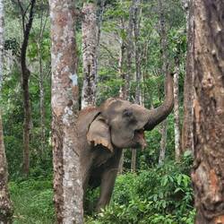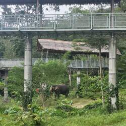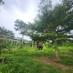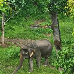 Eine Elefanten Auffangstation ohne Kette in Freiheit.