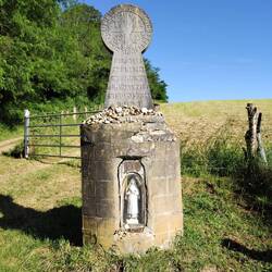 La borne des 1000km pour arriver à St Jacques. Le refuge de ce soir c'est un Tipi. Il y a 2 églises sur cette commune d'où son nom, moustey les deux églises.