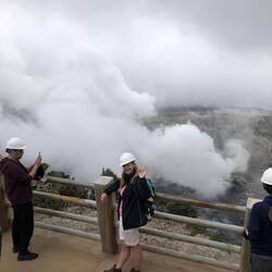 Jetzt sind wir beim Volcano Poaz angekommen. Wir können nur Gruppenweise dort hingehen und jede Gruppe bekommt eine ander Helmfarbe.