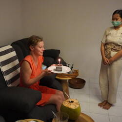 After our afternoon nap and our celebrations, I ordered the "Honeymoon" package for both of us at the spa. That was super and just right after the volcano. It's good that I mentioned - when I made the reservation - that it was Moni's birthday. She was also given a piece of cake and two bracelets there.