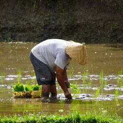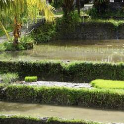 Ich wollte schon immer mal so ein Reisfeld sehen, daran vorbei gehen und die Menschen mit Strohhüten Reis pflanzen sehen. Ich weiß nicht warum, wahrscheinlich, war es eines von diesen Dingen, die so weit weg von meinem Leben waren, dass ich es für unglaublich hielt dies zu erleben. Julian konnte meine Begeisterung für Reisfelder nicht begreifen. Immer wieder ging ich an ihnen spazieren oder stand einfach nur da und schaute den Menschen zu, wie sie knietief im Schlamm standen und kleine Reispflänzchen in akkuraten Linien pflanzten. Einmal wollte ich schon fragen, ob ich auch mitpflanzen darf, aber ich habe mich nicht getraut und irgendwie hat es zeitlich auch nicht gepasst. Es ist so beruhigend dazwischen zu stehen und von dem saftigem Grün umgeben zu sein. Vielleicht habe ich in einem anderen Leben auch selbst Reis gepflanzt und fühle mich deshalb hier so wohl. Auf Bali gibt es das Subak Bewässerungssystem, welches zum UNESCO- Weltkulturerbe und zu den weltbesten Anbauarten gehört. Die Subak ist eine Organisation, die sich darum kümmert, dass jedes Reisfeld Anschluss zu dieser ausgeklügelten Bewässerung hat, damit der Nassreisanbau gut funktioniert. Ein imposantes System aus Bächen, Flüssen und Rohren, welches das Wasser aus den Bergen zu den Feldern leitet. Beim Pflanzen werden zuerst kleine Reisgräser auf kleiner Fläche hochgezogen und dann werden sie in Reih’ und Glied auf dem Schlammfeld gepflanzt. Ein Reisfeld kann bis zu 4 Mal in Jahr bepflanzt und geerntet werden und das ist auch gut so, denn auf Bali braucht mal sehr viel Reis. Auf der Insel isst man 3 Mal täglich Reis, 7 Tage die Woche. Reis ist wichtig und es wird nicht ein Korn davon verschwendet oder weggeschmissen. Reis ist die Speise der Götter und wird mit Respekt behandelt. Hmm…vielleicht sind diese Reisfelder deshalb so magisch anziehend für mich. Es ist einfach so beruhigend, ich liebe es und bin traurig, dass ich nicht alle Reisfelder von Bali gesehen habe. Viele viele Reisfelder!