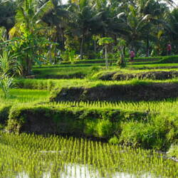 Tak uspokajająco jest stać pomiędzy i być otoczonym przez bujną zieleń. Może w innym życiu sama posadziłem ryż i dlatego tak dobrze się tu czuję. Bali posiada system nawadniania Subak, który jest wpisany na Listę Światowego Dziedzictwa UNESCO i jest jedną z najlepszych upraw na świecie. Subak to organizacja, która zapewnia, że każde pole ryżowe jest podłączone do tego wyrafinowanego systemu nawadniania, dzięki czemu uprawa ryżu na mokro działa dobrze. Imponujący system strumieni, rzek i rur, który prowadzi wodę z gór na pola. Podczas sadzenia małe trawy ryżowe są najpierw hodowane na niewielkim obszarze, a następnie sadzi się je w rzędach na polu błotnym. Pole ryżowe można sadzić i zbierać nawet 4 razy w roku i to dobrze, bo Bali potrzebuje dużo ryżu. Na wyspie ryż je się 3 razy dziennie, 7 dni w tygodniu. Ryż jest ważny i ani jego ziarno nie jest marnowane ani wyrzucane. Ryż jest pokarmem bogów i jest traktowany z szacunkiem. Hmm... może dlatego te pola ryżowe są dla mnie tak magicznie atrakcyjne. To takie uspokajające, uwielbiam to i jest mi smutno, że nie widziałam wszystkich pól ryżowych na Bali. Wiele, wiele pól ryżowych!