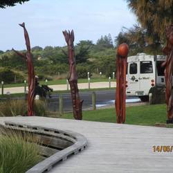 Lunch stop in tourist town. Pics are along the road, the beach in town and some wood carving