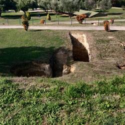 The 3rd picture looks closer at at one of the excavated tombs, showing the ramp down in. The 4th picture is taken inside a smaller tomb, while the 5th and 6th look at a large tomb. The 5th picture looks down a short section of the entry ramp to the door into the tomb. The walls are actually slanted inward. The last picture is inside that same tomb. It was the largest one I visited.Read more