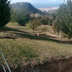 The 1st picture is taken from the top of the hill above the necropolis. Bortzi Hill is in the background. The 2nd picture is taken from the same spot but at a different angle to get a better look at the archaeological excavations of the tombs.
