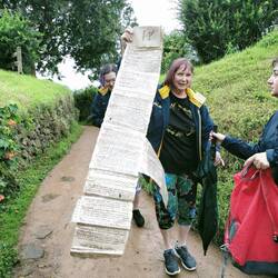 The 6th and 7th pictures show one of the cinematography tricks. The one where I'm standing would be used for hobbits and dwarves to make them look smaller. The smaller one in the 7th picture would have been used for Gandalf and other non-small people to make them look taller.
