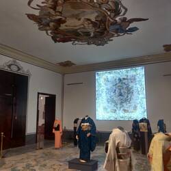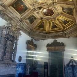 The last picture is the chapter room of the monastery. The coffered ceiling is decorated with paintings from the 18th century that creatively depict moral values.Read more