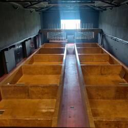 The 1st picture looks along the main or long axis of the cruciform nave while the 2nd picture looks across the transept.