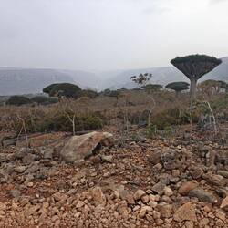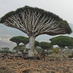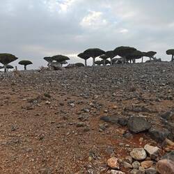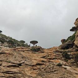 At the only dragon blood tree forest on earth on the Diksam Plateau. This tree has become a symbol for Socotra, and being here is a highlight of Socotra.