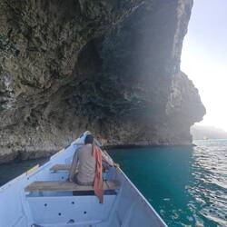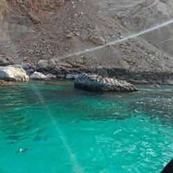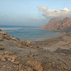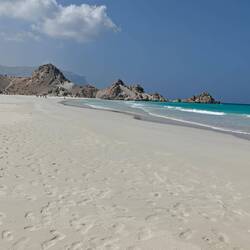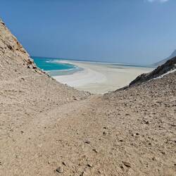Shoab Beach is accessible only by boat from Qalanshiya. It has soft white sand, crystal clear water and cliffs on the land side. The water side is the Arabian Sea.