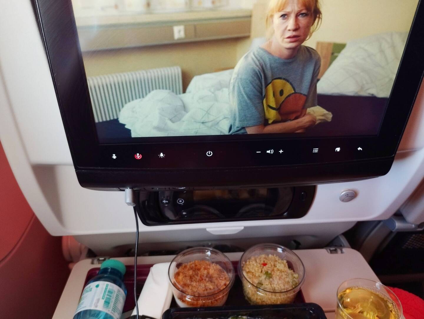 Flug war nett, gutes Essen, drei Menüs zur Auswahl. Decke, Polster, viel Platz. Mir geht's gut. Hab "Andrea lässt sich scheiden" angeschaut und sogar ein bisschen geschlafen.